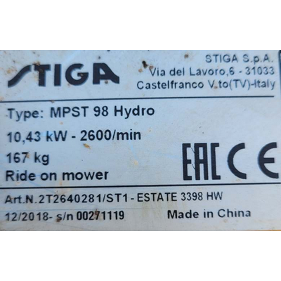 ESTATE-3398HW 2T2640281/ST1  MPST98 Hydro