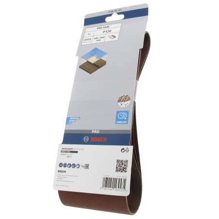 Cet abrasif, bande 100x560 g120, jeu de 3 est compatible avec des ponceuses, de marques : AEG, ELU, RYOBI.